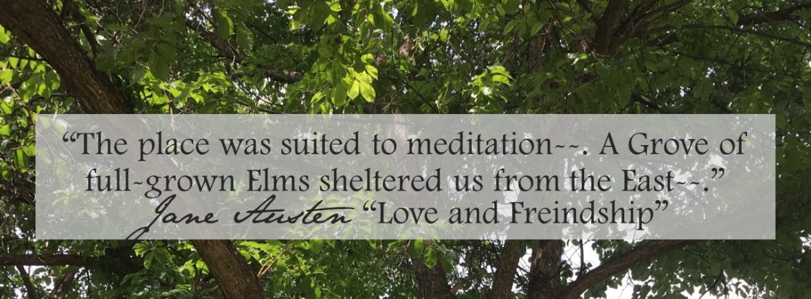 “The place was suited to meditation–. A Grove of full-grown Elms sheltered us from the East–. A Bed of full-grown Nettles from the West–. Before us ran the murmuring brook and behind us ran the turnpike road.” “Love and Freindship” (Juvenilia 127)