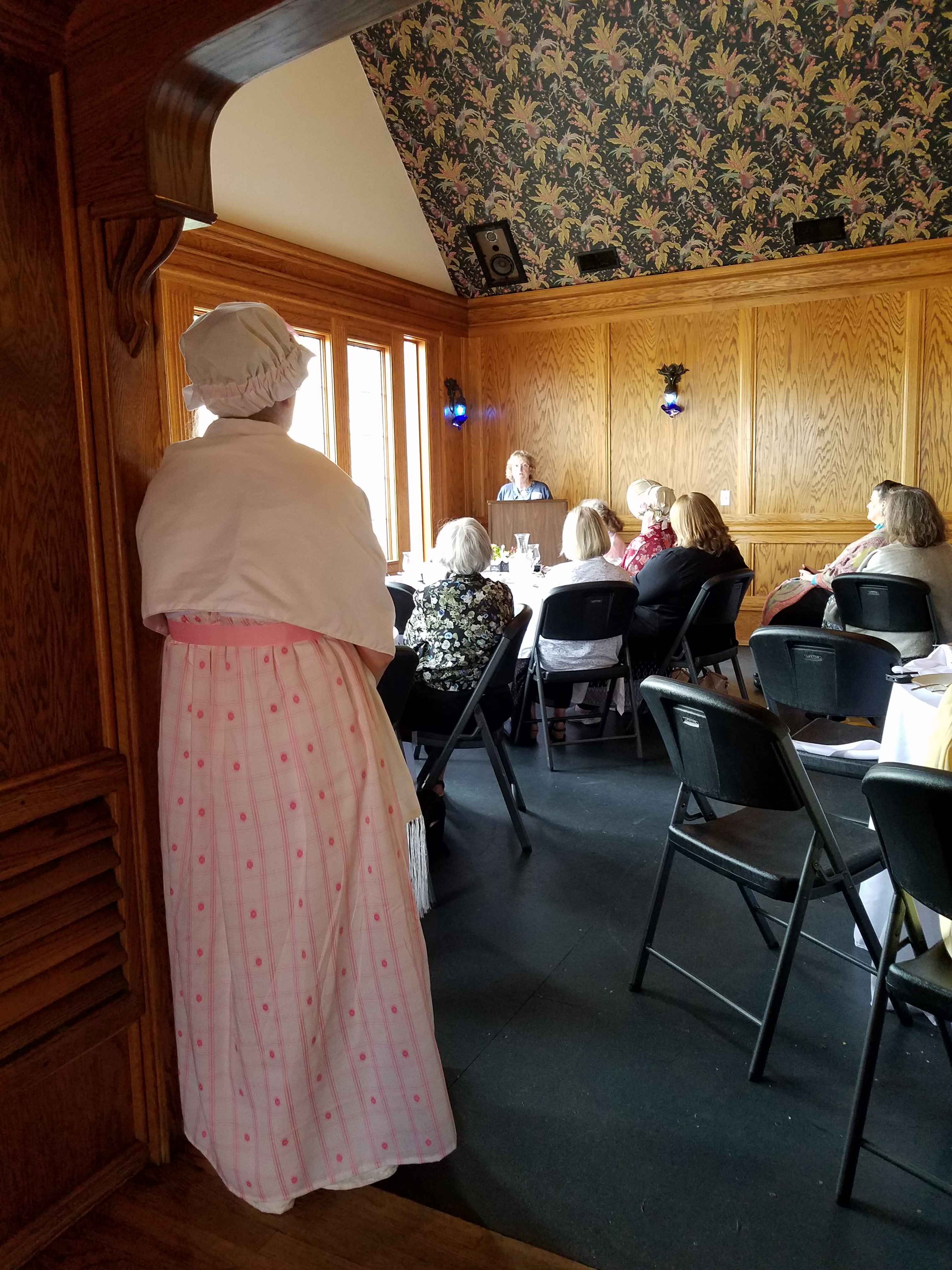 Me in the dress and cap with Pamela Aidan, our speaker at the Spring Tea