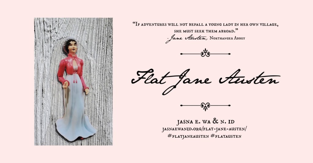 Cindy B. Liberty Lake, WA: Tea with FJARose T. Las Cruces, NM Freja the MuleRachel J. Post Falls, ID: Outdoor tea timeMelody F. Spokane, WA Riding the Skyride over the Spokane RiverJane P. Spokane, WA: Lakeside relaxingKristina C. Nashua, NH Fancy tea with JaneKristin K. Mead, WA: Pacific Sunset on Oregon CoastHeather M. Clifton Park, NY: Nature WalkCynthia S. Spokane Valley, WA: Mirabeau Point WaterfallAmy S. Powell, OH: School Bulletin BoardKirk C. Boston, MA: Beacon Hill with truly Flat Jane AustenMary M. Milton Freewater, OR: With the ChickensAnne H. Spokane, WA: Mending her ReticuleA Lady in KY: Turkeys and Chickens!Lynne M.. Modesto, CA FJA with Carved Bear Carolyne A. Quebec, Canada: Poutine LunchJane Austen House Museum, Chawton, England: Holiday Wreath Tiffany O., Easthampton, MA: The Hotel NorthamptonLynne M . of Modesto, CA and FJA Crash the EMMA setJenny R. Bowie, TX: Southwest Airlines HeadquartersKate H., North Wales, PA: Library Discovery! Sara T. Pullman, WA Firepit with Mask Ellery A. Chapel Hill, NC: TeacupsDebra P., Bayview, ID: Jane Austen Doll HouseJane Austen Centre, Bath , UK: With Mr. Darcy Alyssa O. East Greenwich, RI: Rhody the RamNicole C. Ginshiem, Germany: Local HousesRosemary S. Moscow, ID: Local Historic ChurchEmma J. Santa Barbara, CA: BEACH!Beth A. Millsap, TX: The Dallas Galleria Ice SkatersJane Austen Runs My Life: Muslins! Nicole C. Ginshiem, Germany: The River Melinda H. Shalimar, FL: Fighter JetDeanna H., Seattle, WA: Fishermen’s TerminalJane Austen House Museum! Chawton, England (she’s in the wreath)Kirk C. trip to Alexandria, VA: Carlyle House Historic ParkJennifer C. Surrey, B.C.: Vancouver WaterfrontTina W., Kent, WA: Memorial Day with JaneBecky S. Penn Valley, CA: Tea and BiscuitsToya S., Brooklyn Center, MN: Memorial for Dante WrightJo B. San Francisco, CA: Palace of Fine ArtsKelly S. Camano Island, WA: Sailing on Skagit BayOlivia S. Brantford, Ontario: Alexander Graham Bell HomesteadLizbeth W. Eagle, WI: Eagle Band GazeboCristina H, Redmond, WA: Translating Jane Austen VariationsAmanda F. Wethersfield, CT: Community Art ProjectAgnes G. Seattle, WA: Rachel the Pig at Pike Place MarketKirk C. visits St. Francisville, LA: A View from the Porch of RosedownKaren P. Foster City, CA: Fresh Fruit and Veggies!Kirk C. visits Natchez, MS: The Wide Mississippi River Naomi S. Kelowna, B.C.: Watching the OlympicsAshley S. St. Catherines, Ontario: Horseshoe FallsDonna F. Broken Arrow, OK: Philbrook Museum of Art