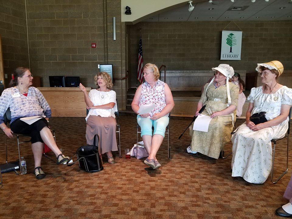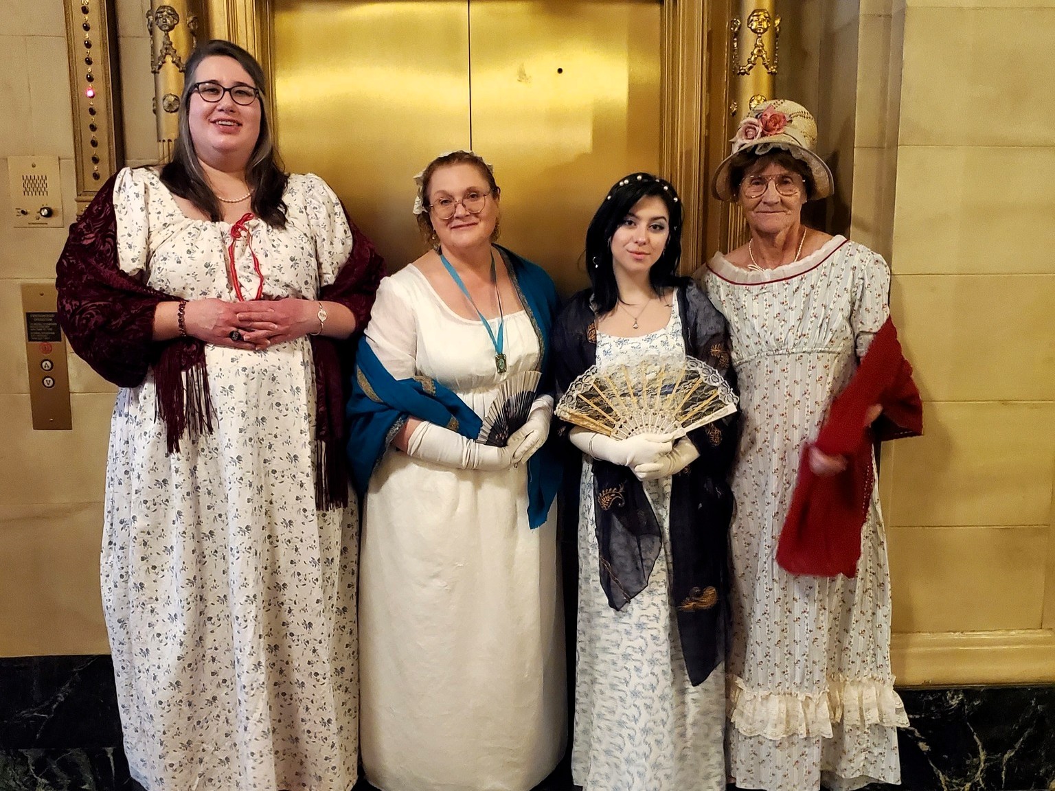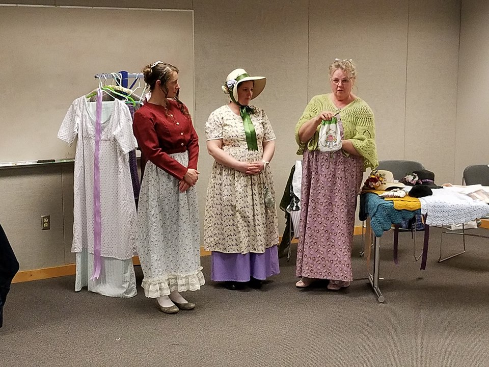 March 25, 2018 Creating a Regency Wardrobe: How to Be an Emma, Not a Mrs. Elton. Presenters: Debra Peck and Yvette Tremblay-Kelly. Spokane Library-South Hill Branch, Spokane