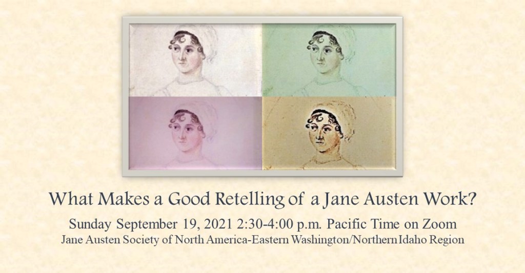 September 19,2021 What Makes a Good Retelling of a Jane Austen Work? on Zoom