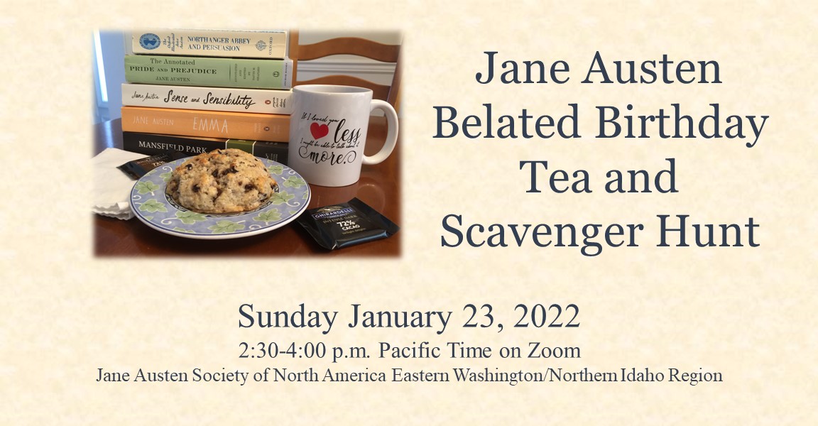 January 23, 2022 Jane Austen Belated Birthday Tea and Scavenger Hunt (Zoom)